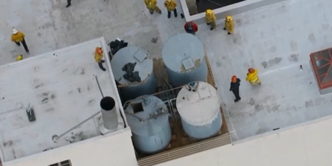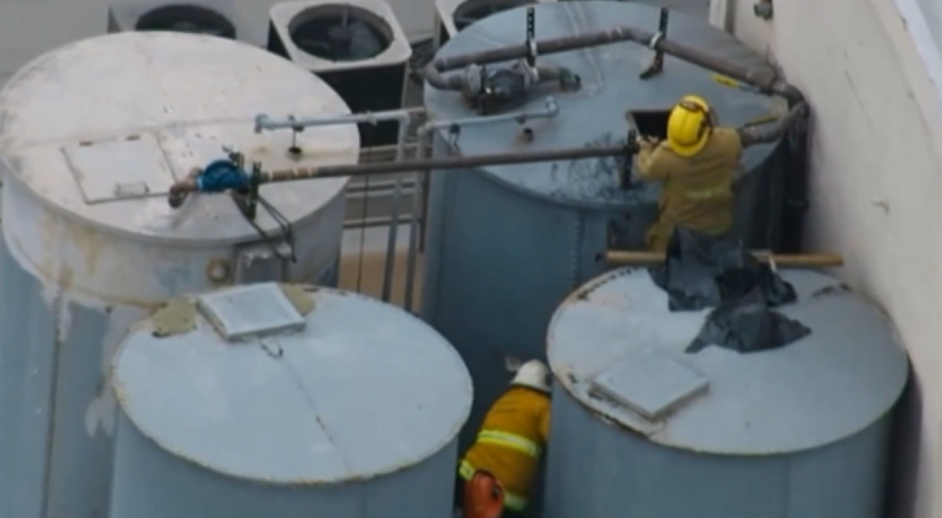 我们来看下塞西尔酒店天台上的水箱到底是怎样的,通过图片我们来判断蓝可儿到底有没有可能自己爬进水箱。